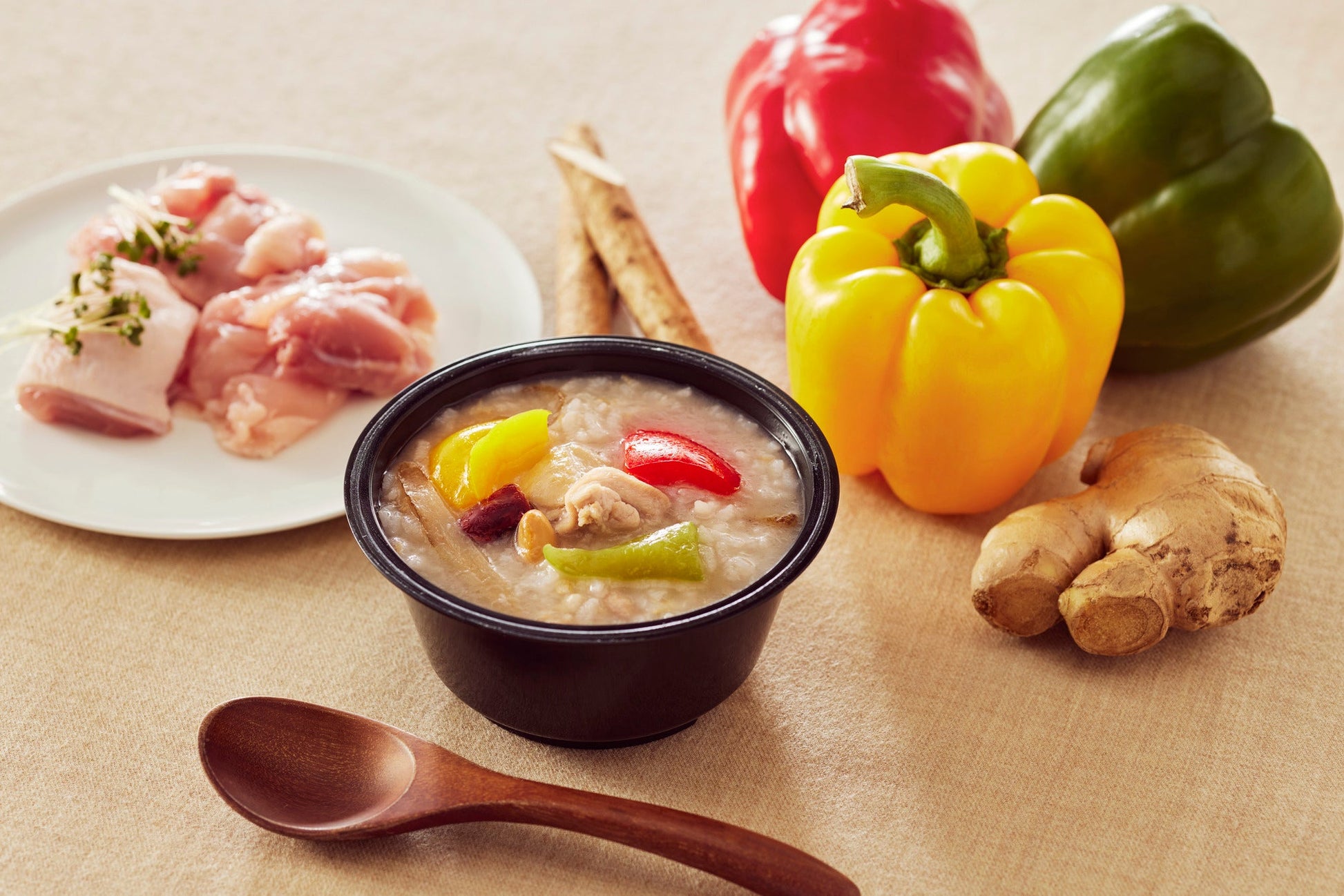 レンジで80秒で食べられる、ごろごろ具材の贅沢スープおかゆのセットです。